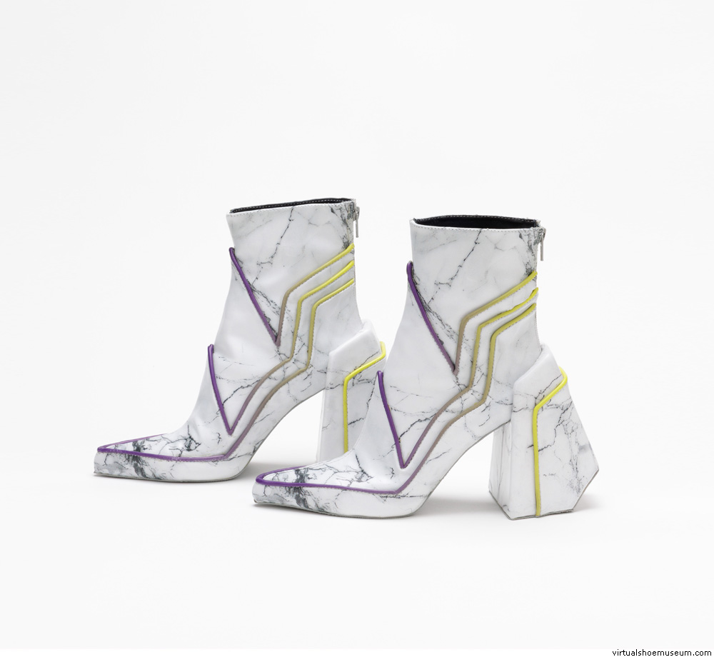 Marble printed Spazzolato calf leather high heeled pointed ankle bootie, 2025.