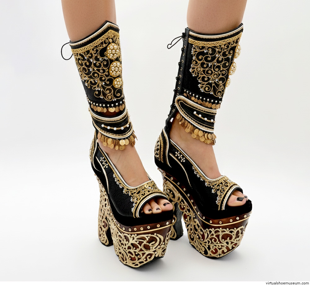 This shoe reinterprets the original Bulawan named after the Visayan word for ‘gold’. The work honors the enduring cultural significance of gold in Philippine history, from pre-Hispanic adornment to contemporary expression. Revered by early Filipinos and later incorporated into sacred Catholic objects, gold has long symbolised status, spirituality, and artistry. Through traditional metalworking techniques such as repoussé, filigree, and casting, the piece reflects the layered narratives, beliefs, and craftsmanship that continue to shape Filipino cultural identity.Â